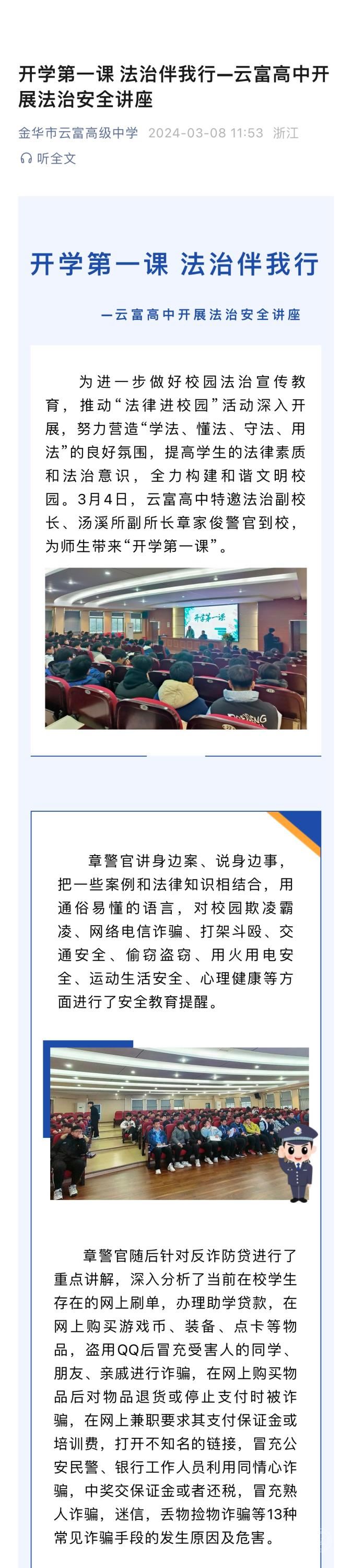 开学第一课 法治伴我行—云富高中开展法治安全讲座