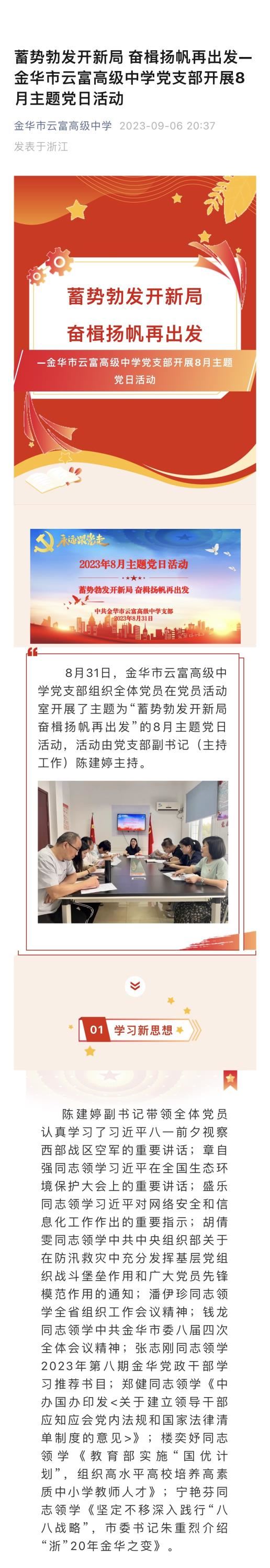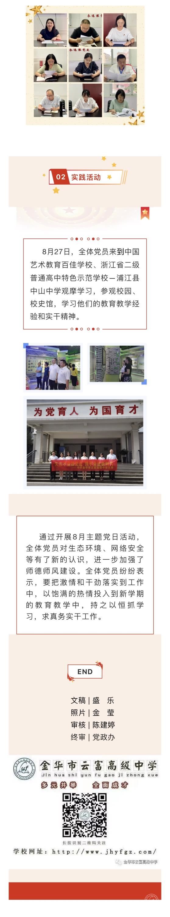 蓄势勃发开新局 奋楫扬帆再出发—金华市云富高级中学党支部开展8月主题党日活动