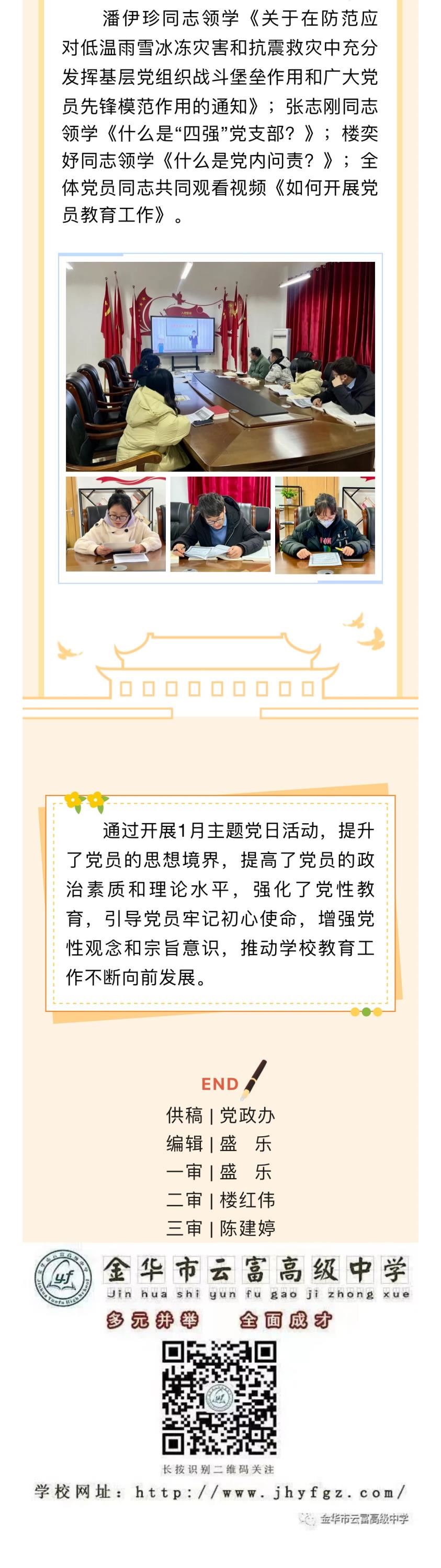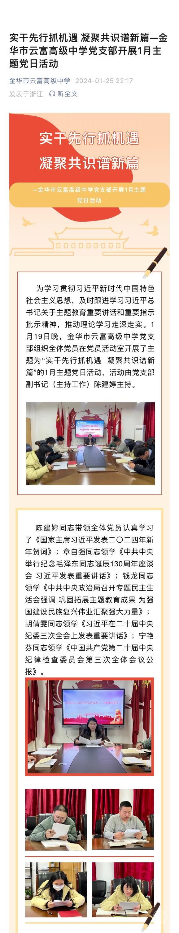 实干先行抓机遇 凝聚共识谱新篇—金华市云富高级中学党支部开展1月主题党日活动