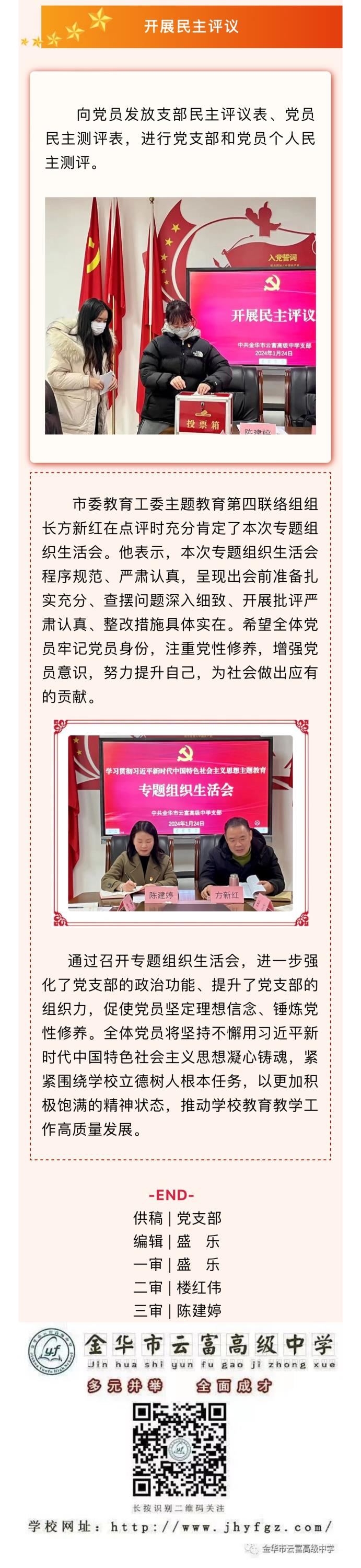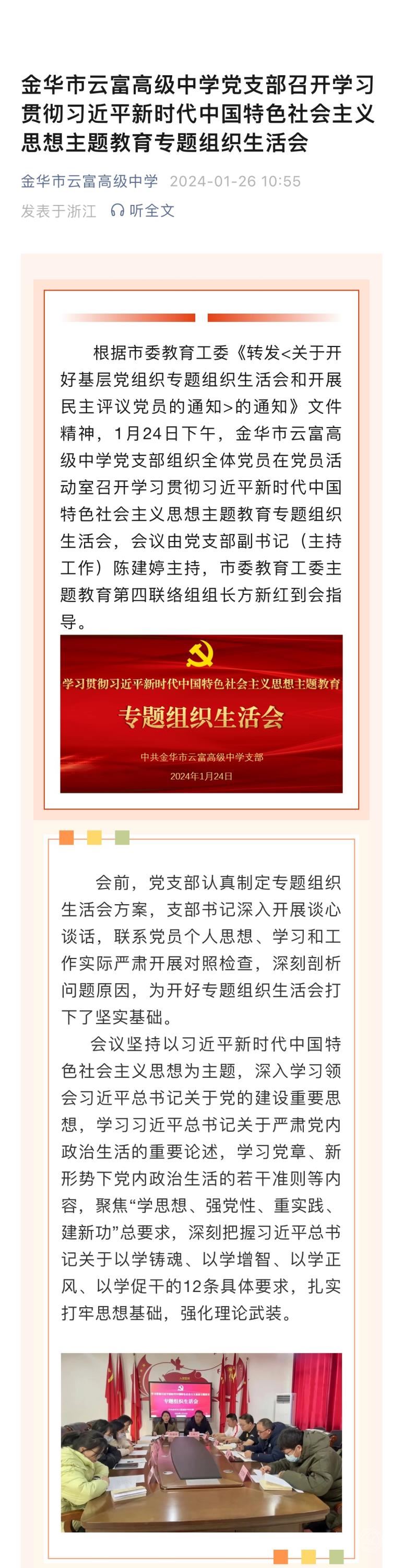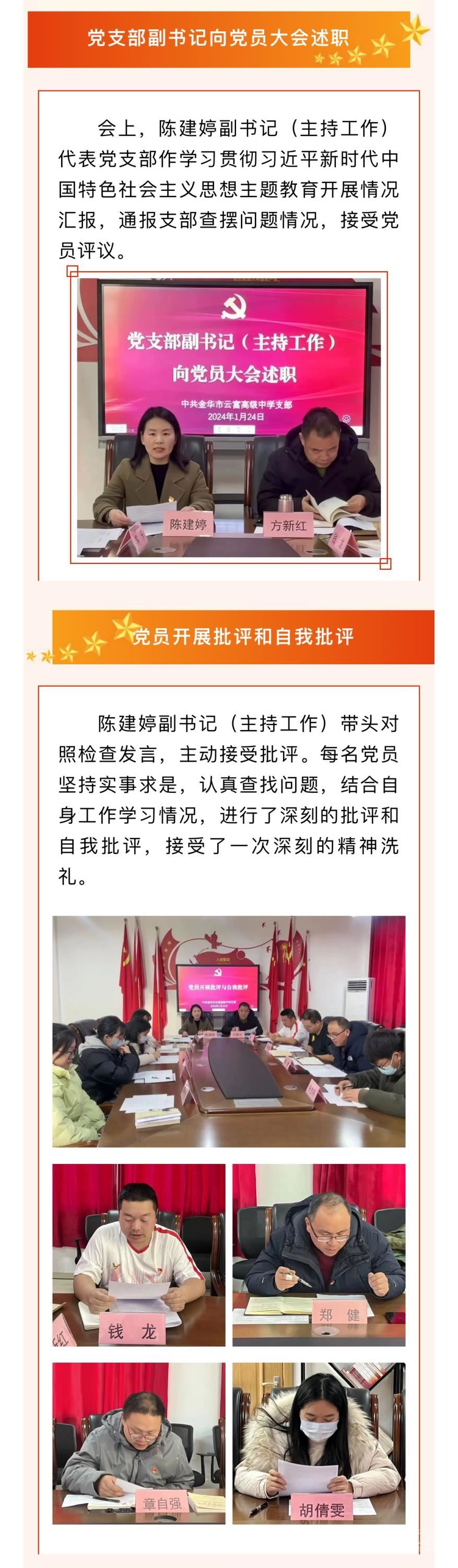 金华市云富高级中学党支部召开学习贯彻习近平新时代中国特色社会主义思想主题教育专题组织生活会