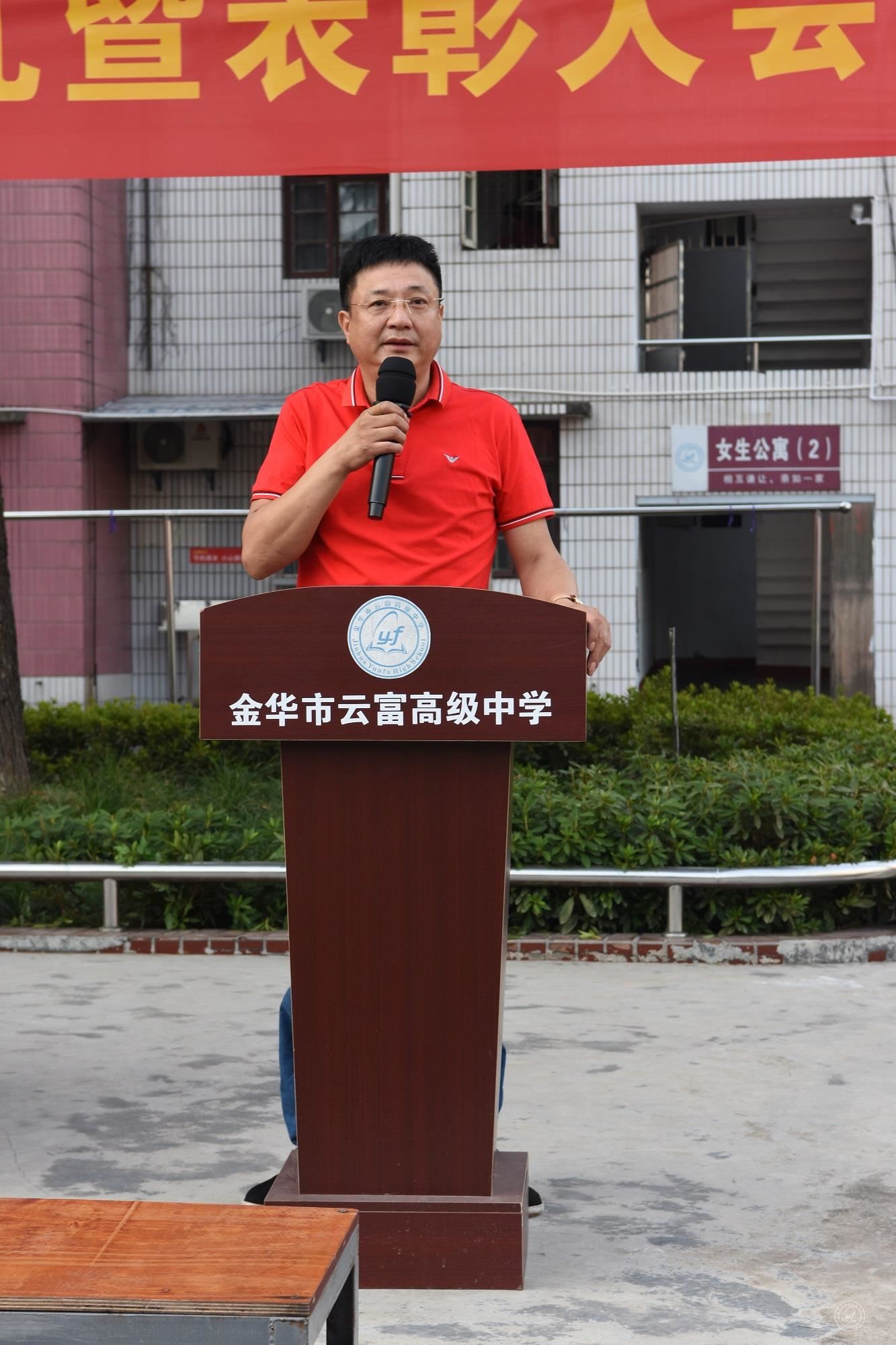 楼红伟说:今天是第36个教师节,首先祝福每一位教师节日快乐,身体健康!云富今天取得的成绩离不开全体师生的努力,云富美好的未来更需要你们齐心协力!在这个有特殊意义的节日里我们举行开学典礼并表彰先进,是对新学期的展望,是对我校师资队伍发展的总结与褒奖、是对老师和学生的激励。希望今天受到表彰的集体和个人珍惜荣誉,继续前行。希望云富全体师生都以最高标准来要求自己,为创建全国文明城市贡献自己的力量!