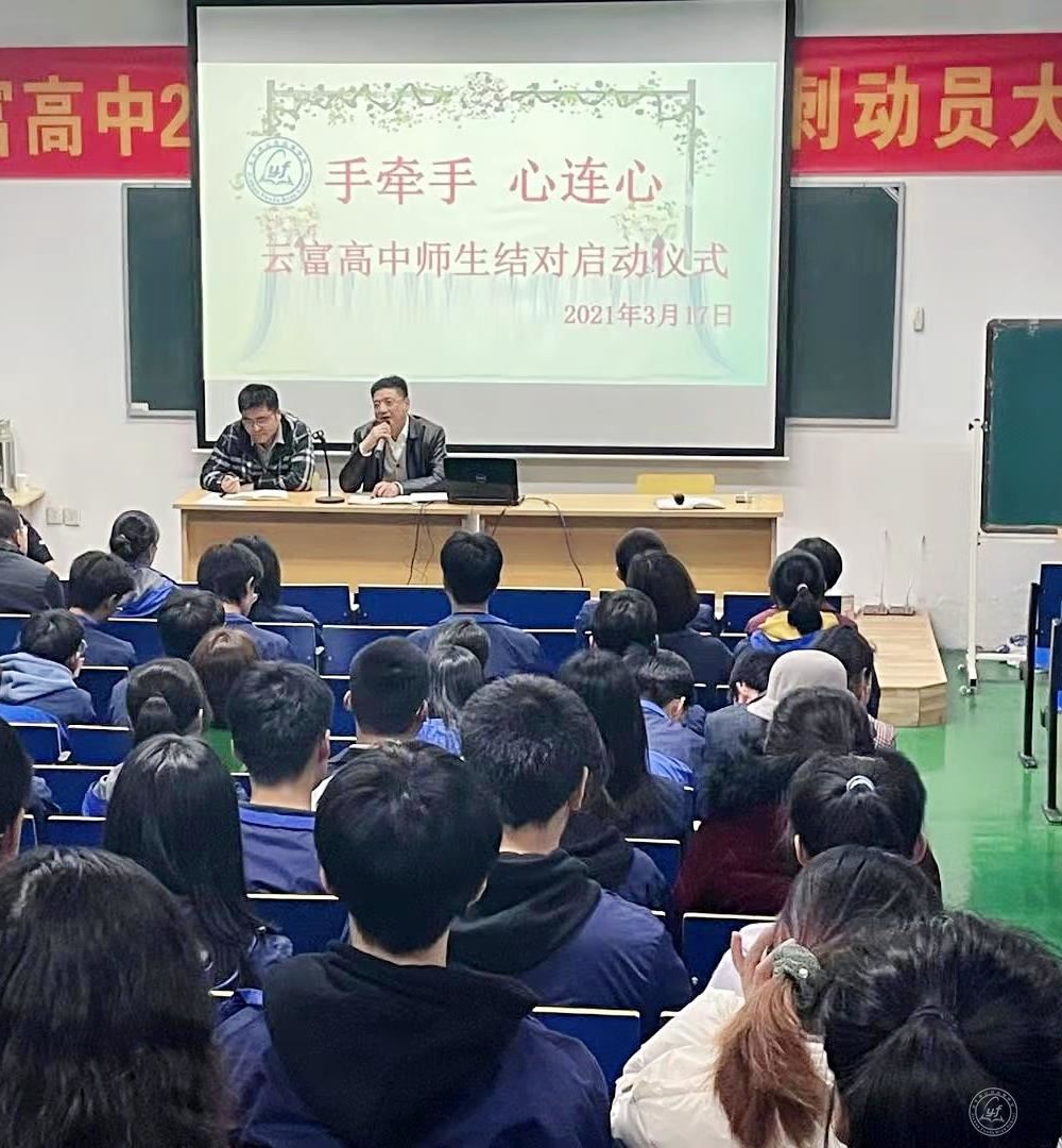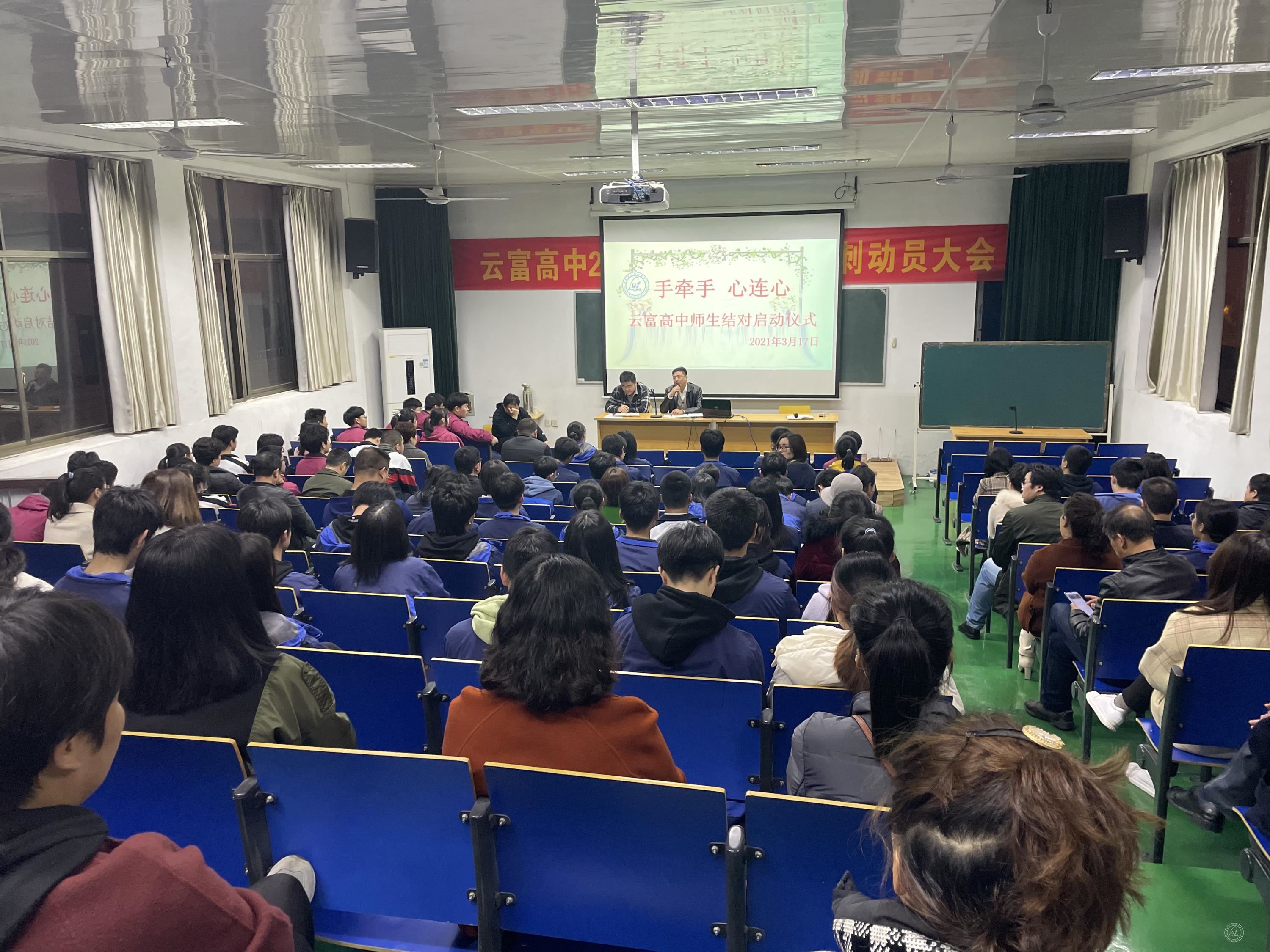 “万水千山春风扬,云富高中师生喜。真心实意来帮扶,手牵手来心连心。”3月17日晚,云富高中全体教师与结对学生、家长代表在教学楼五楼报告厅举行师生结对启动仪式。此次师生结对活动是学校的一项创新性举措,为培优补弱工作搭建了良好的平台,为校园学习生活增添了幸福感。