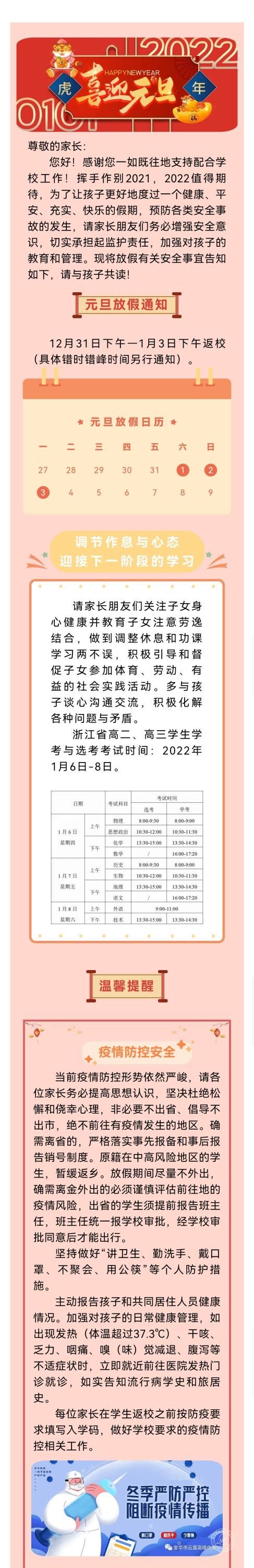 云富高中2022年元旦放假致家长一封信