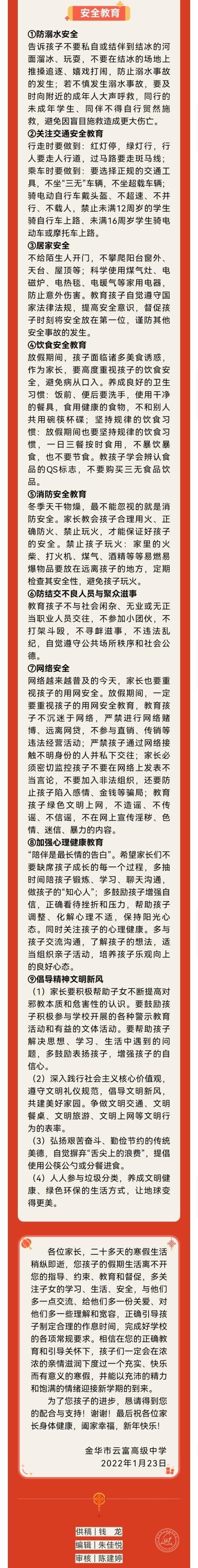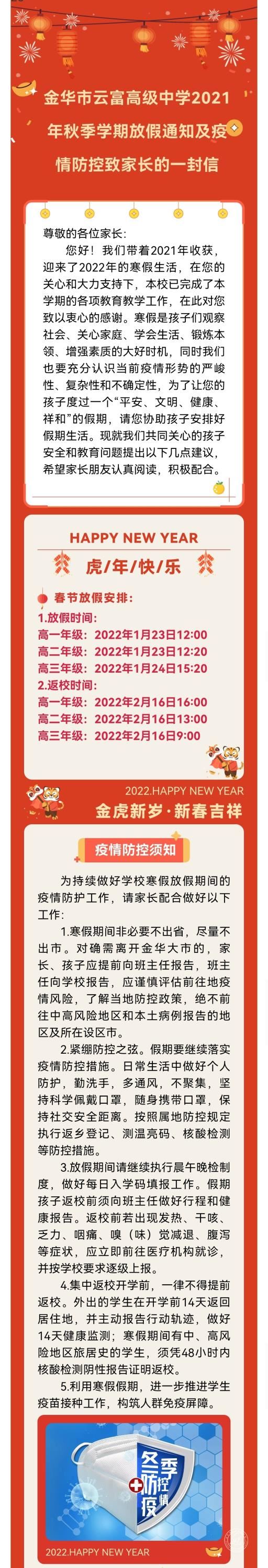 金华市云富高级中学2021年秋季学期放假通知及疫情防控致家长的一封信