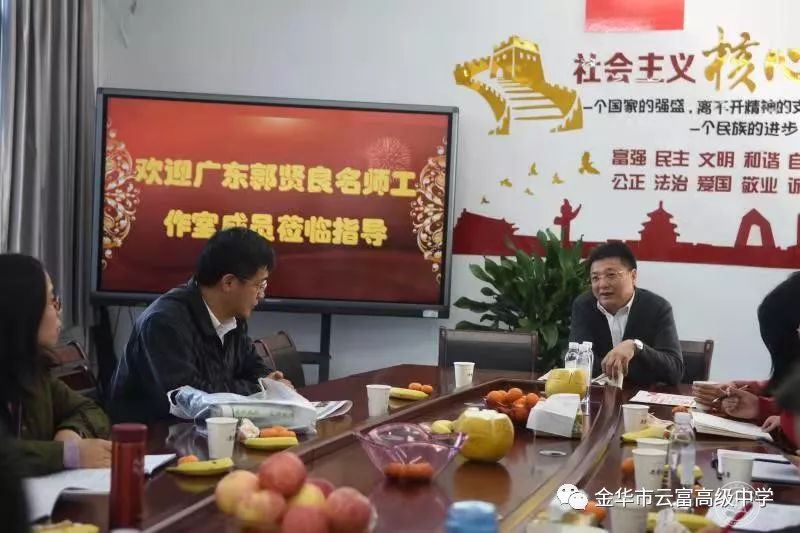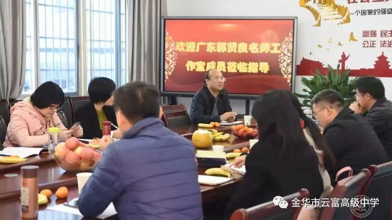2019年11月19日上午,金华市云富高级中学迎来了来自广东省茂名市郭贤良名师工作室一行九人来校交流学习。此次活动是一次由金华教研室牵头的关于新高考“概要写作”和“读后续写”教学的深度探讨。